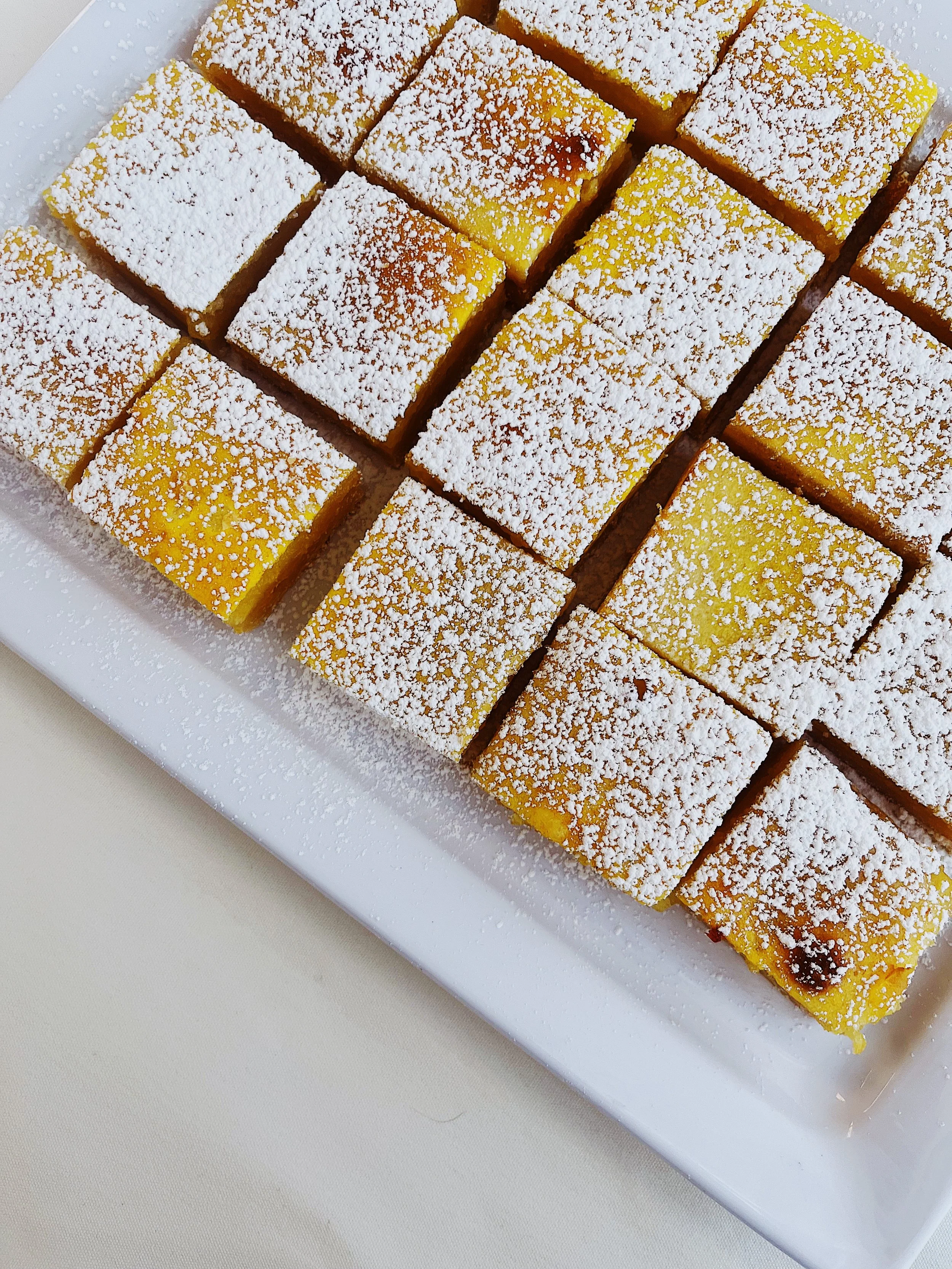 lemon squares, cream puffs, cookies, brownies, rice krispies